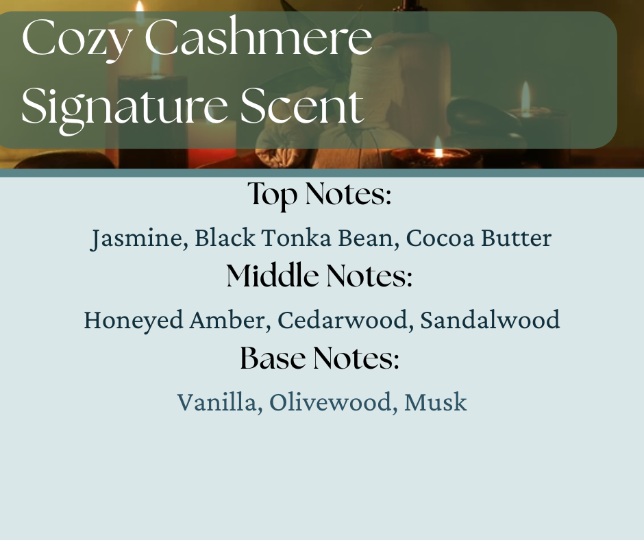 This relaxing foot soak service starts off with soaking the feet in a pedicure soak of warm water with vanilla bean and sugar bath salts. It continues with a gentle Muscovado sugar scrub, blended with butters that support skin health while hydrating the skin. An application of our massage oil with signature scent, Cozy Cashmere is applied and a reflexology modality is done to help relax tendons and muscles. The service is completed with a lotion in our signature scent, Cozy Cashmere. While you receive this service, enjoy tea service from the Boulder Dushanbe Teahouse wellness tea collection- served hot or cold. Our signature scent Cozy Cashmere is a blend of warm spices and creamy coconut that results in a sweet, cozy and lingering fragrance. This scent unfolds with delicate jasmine, rich vanilla, and tonka bean, harmoniously layered with the comforting notes of sandalwood, honeyed amber, cedarwood, olive wood, seductive musk and cocoa butter. Like your favorite blanket, this sophisticated scent evokes being snugly wrapped in warmth and comfort.