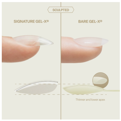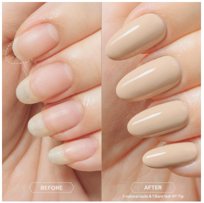 Meet your new natural. Bare Gel-X® is the thinnest, most natural-feeling extension yet. Designed to be thin, durable, and completely customizable, Bare Gel-X® gives you the most flawless natural nails you were meant to have. With its low profile and ultra-thin finish, this full-coverage extension system will have you wondering: is it natural nails or Bare Gel-X®? Offered in either Natural or Sculpted, Bare Gel-X® features one universal length tip that allows the nail technician to cut, file, and shape into any look. Whether used for a natural minimal extension, a natural nail overlay, or a repair solution, Bare Gel-X® is built for comfort and durability while offering that barely-there look that blends seamlessly into your own nails. Experience the only nail extension system meant to truly mimic your natural nails.